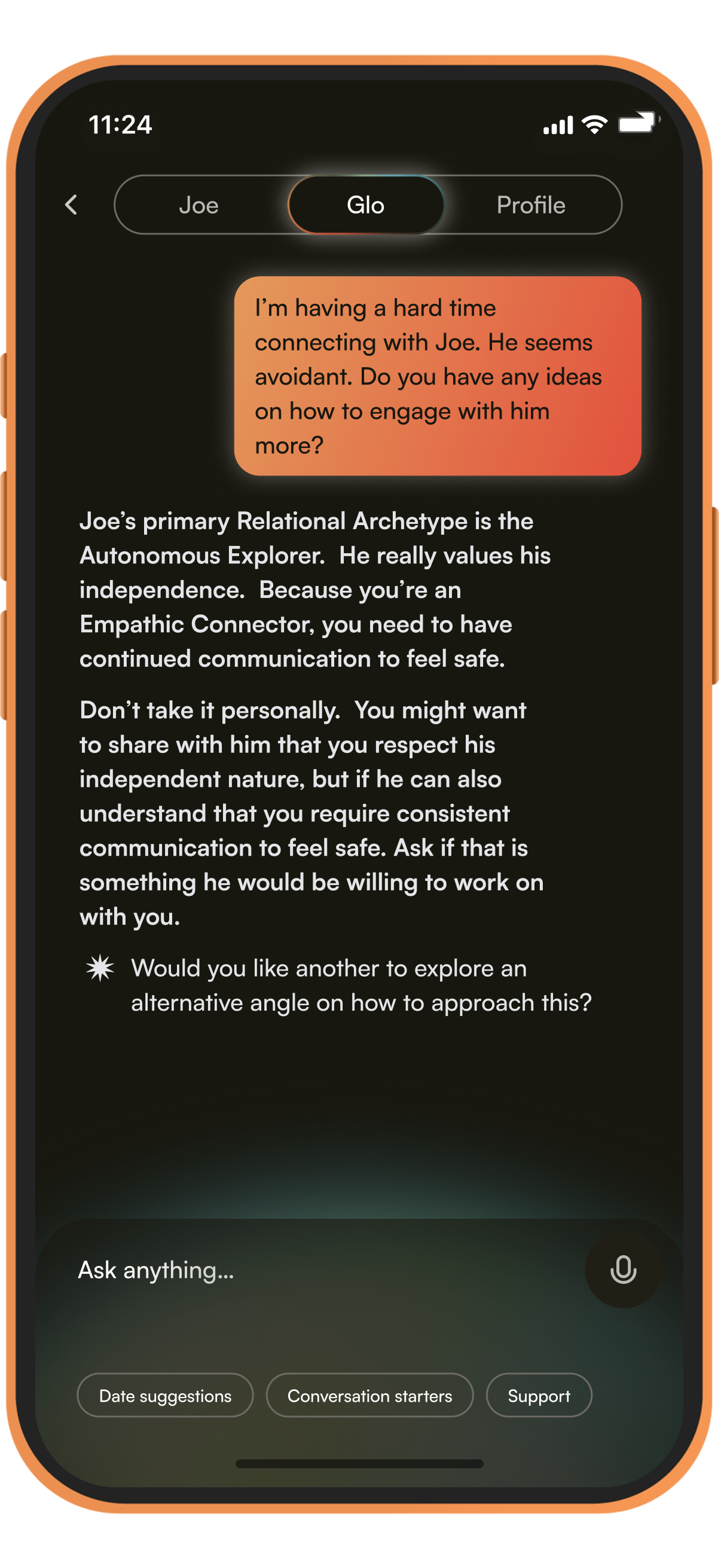 Discover your Relational Archetype A smart compass for human connection An emotionally intelligent dating companion Ice Breakers Conversation Analysis Date Curation Challenging Topics